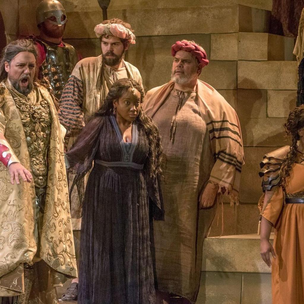 But the chorus! The chorus, under conductor Stephen Hargreaves and assistant chorus master Jon Garrett, achieve the sublime! Time and again their sixteen voices blend in a sweet unison which focuses and compels and symbolizes the unity of a people. When they entered through the audience singing that incomparable “Va pensiero” I felt utterly wrapped and invested in that nostalgic yearning of the Hebrew slaves.Maestro Hargreaves does superb work from that moment when the ominous chorus of low brass starts the overture till the final notes of the evening.